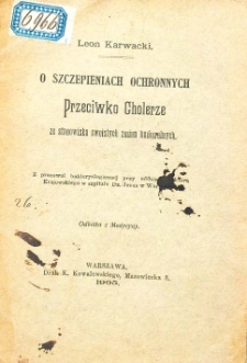 Title: 0 szczepieniach ochronnych przeciwko cholerze ze stanowiska swoistych zmian humoralnych